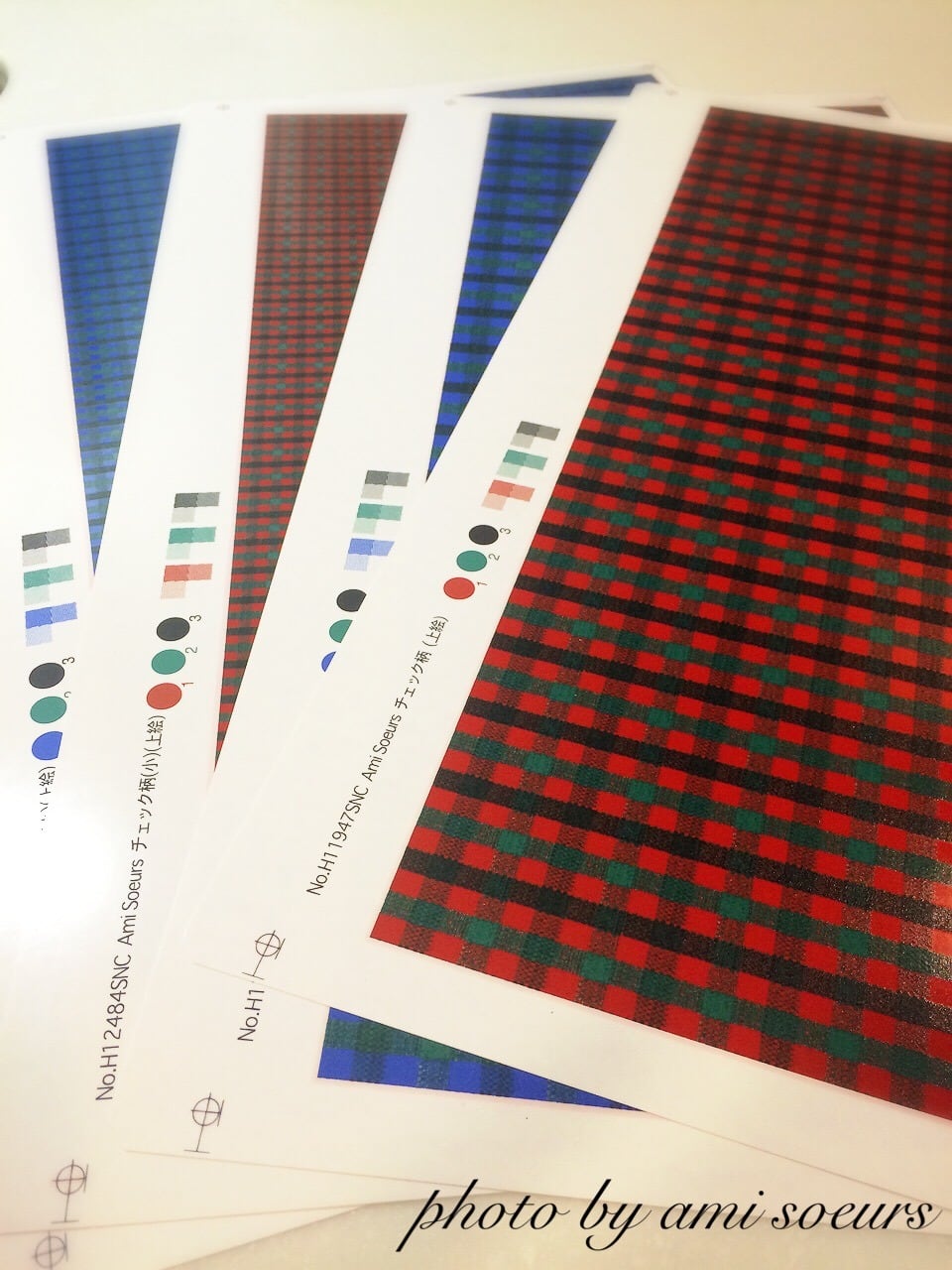 ファミリア風のチェック柄ミニとラージの赤と青のセット販売(計4枚)となります。それぞれを1枚ずつご購入いただくよりお得になっています。